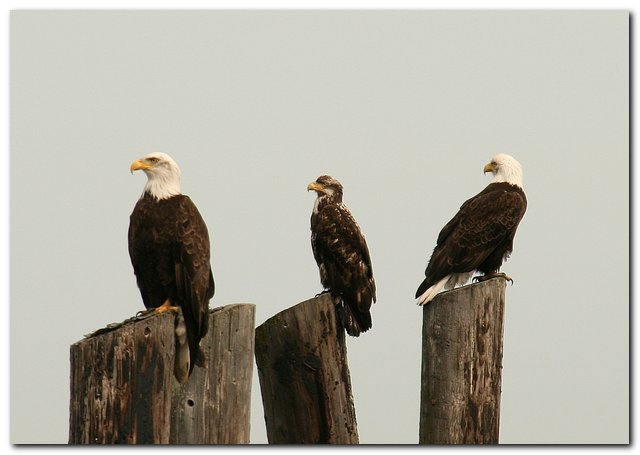 Eagles are in any case extremely resilient and hearty. The one on the left has lost an eye, perhaps to a misguided hunter. I’m told it can no longer hunt since its perspective is now “off,” but it is a survivor. Eagles scavenge a good deal and the one with the injury appeared healthy.