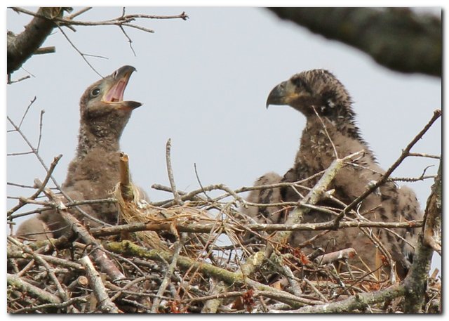 There is (or actually was) a great eagle nest near where I live in Sequim, Washington. I’ve watched the eagles raise chicks in the nest each year. Truth be told, these chicks are ugly. SNARK ALERT: (But unlike Sarah P and Michelle B, these ‘chicks’ will mature into something impressive.)
