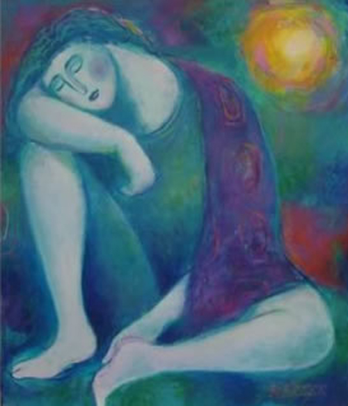 Cher, thank you so much for the image, and the words of Rumi. I love your image. It works so well with my own, I feel. They could be seen as showing the same woman, first lost in her own grief and not seeing the sun behind her, and then facing it and being bathed in its light. Very much a diptych image of Recovery!