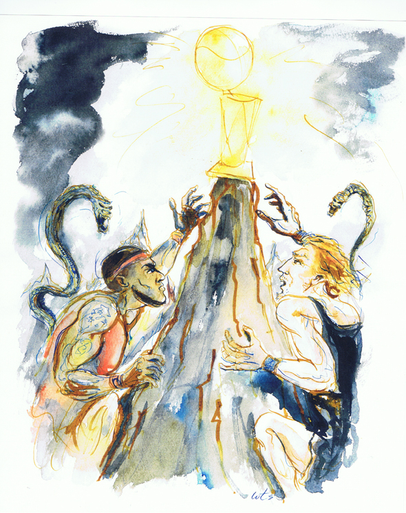 It is hard to imagine a more picturesque city than the medieval fortress town of Wurzburg, Germany, nor one less so than grimy Akron, Ohio. These cities, similar in population sizes, but very little else, are the hometowns of the two main protagonists in the drama that is about to unfold. Dirk, the seven foot giant from Wurzburg, has a sports pedigree as stately and impressive as the town he hails from. His mother was a professional basketball player,while his father was a handball player who represented Germany at the highest level. His sister is a former track and field star/basketball player who now works for the NBA’s International TV division. Conversely, Lebron’s background matches his town’s tough, hard scrabble condition. The only child of an unwed teenage mother, if it weren’t for his phenomenal athletic abilities (he could probably start in the NFL if he chose to), it’s doubtful he would have risen above the hard knocks of his upbringing to be anything more than just another struggling nobody in a region plagued by one of the highest unemployment rates in the country. Instead, he’s one of the world’s best known athletes, with more money than God. Only in America, as they say.