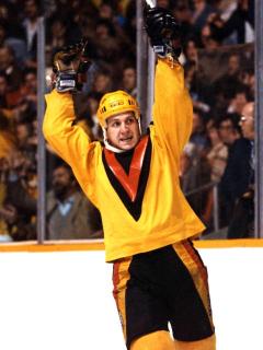 I went to a Canucks game a few years back in Phoenix. While I far prefer the current uniforms (and the firm that decided on the previous scheme should be punished for crimes against the color palate), there were still Vancouver fans wearing it. I only hoped the throwbacks were worn ironically. Then, it’s almost cool. And the flying skate was far more an eyesore than the V in my opinion. I mean, take me. I never knew much about hockey, but the uniforms were so notorious they transcended hockey as being among the worst in all of sportsdom. How they didn’t revert back to the original colors earlier – like after the 70s ended – is a mystery to me.